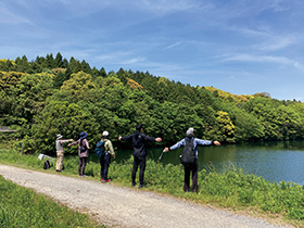 ・ネイチャートレッキングでは、森林インストラクターが同行し森林セラピー効果が上がるように森の癒しをご案内します。動きやすい服装でご参加ください。(距離:2㎞ 高低差:30m 時間:約60分)