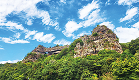 【競秀峰】歩行距離:約3.2km ・歩行時間:約2時間30分 ・高低差:約180m ・難易度:中級登山 標高:約180m(鬼面岩地点)