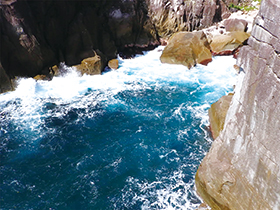 ホテル → 九鬼オハイブルー(断崖絶壁の下に広がる絶景のエメラルドグリーンの淵)【8:30-13:30】 → 各地(18:00~19:30) ※天候や道路状況等によって、予定ルートを変更してご案内させていただく場合があります。