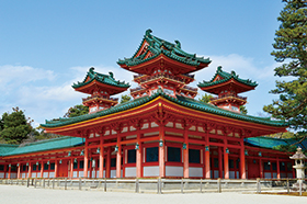 各地 → 平安神宮(日本文化のふるさと京都の繁栄の象徴)【10:15-11:15】 → ウエスティン都ホテル京都・オールデイダイニング洛空(ライブキッチンで多様な味覚をお楽しみ下さい)【11:30-13:00】 → 上賀茂神社(神馬を奉納、厄除、八方除、方除、必勝の神、電気産業の守護神として信仰を集める京都最古社のひとつ)【13:30-14:40】 → 京菓子匠・俵屋吉富(お買物)【15:00-15:40】 → 各地(17:30~19:00)