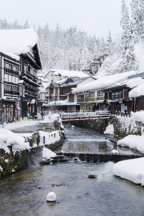 木造建築がレトロな温泉街銀山温泉で大正ロマンの雰囲気漂う街並み散策と、文久年間創業の麩専門店でいただく麩料理の昼食をお楽しみください。