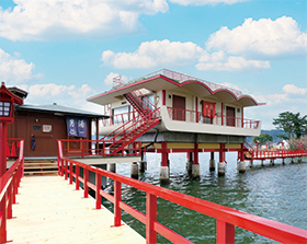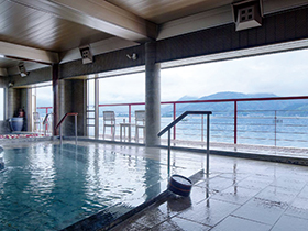 望湖楼:日本唯一の湖上露天風呂をはじめ、室内でも湖のせせらぎを感じて頂ける半露天風呂、鳥取地区最大級の広さを誇る大浴場など全て源泉掛け流しで最高級の癒しをご体感頂けます。