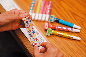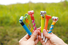 ・吹き戻しの里では、昔なつかしい「吹き戻し」の製作体験をお楽しみください。 製作した吹き戻しは、お土産としてお持ち帰りいただけます。(6本)