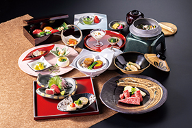 甲府・湯村温泉常磐ホテル:開湯1200年を誇る 信玄の湯 湯村温泉。エントランスを入ると約3000坪の風雅な日本庭園が広がります。“山梨の食材” と “旬の味覚”を使ったお食事を夕食・朝食ともに個室のお食事処でご用意いたします。世界遺産富士山を遠望するお部屋で贅沢な時間をお過ごしください。