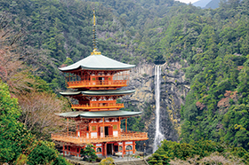 ホテル → 熊野古道・大門坂(古道の雰囲気を色濃く残す苔むした石段と杉木立)【8:50-9:30】 → 熊野那智大社・青岸渡寺(西国三十三所観音霊場の第一番札所と熊野三山のひとつにご案内)【9:50-11:20】 → 那智の滝(落差約133m日本一の名瀑)【11:30-12:10】 → 那智またはすさみ(昼食)【12:20-13:10】 → 各地(18:30~20:00)
