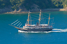 A:各地 → 広畑港 ~ 姫路港(船内で食事 /船上にて花火観賞)【19:00-20:50花火観賞/21:30発】 ~ 広畑港【22:30発】 → 各地(23:00-25:00)