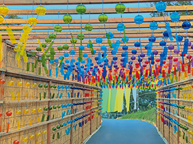 ・夏に人気の観光地。SNS映えで有名なびわこ箱館山へご案内いたします。ご昼食は、約30種類の和惣菜バイキングをお楽しみください。