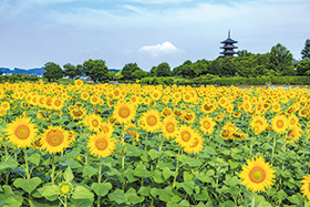 各地 → 西の屋菊ヶ峠店(昼食・お買物)【11:00-12:10】 → 吉井農園(1玉白桃狩り体験)【12:20-13:00】 → 備中国分寺(田園風景に建つ五重塔とひまわり畑見学)【14:00-14:50】 → 牛窓オリーブ園(『日本のエーゲ海』とも呼ばれる美しい景色を堪能)【16:00-16:50】 → 各地(18:30~19:30)